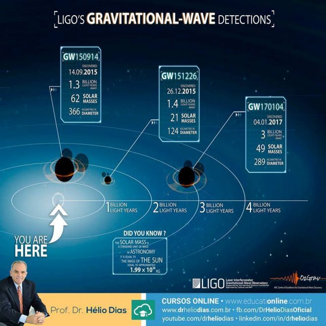 A teoria exigiria que esses buracos negros fossem formados no universo inicial, a partir de manchas de material, em vez de estrelas, entrando em colapso para dentro. As últimas observações revelam a existência de buracos negros em uma “janela de massa” que seria consistente com essa teoria. No entanto, a teoria ainda é vista como “um pouco exótica”, de acordo com Berry.Por que descobrir ondas gravitacionais muda tudo.O estudo, uma vez mais, coloca as teorias de Albert Einstein à prova. Os pesquisadores procuraram um efeito chamado dispersão, que ocorre quando as ondas de luz em um meio físico, como o vidro, viajam a diferentes velocidades, dependendo do seu comprimento de onda; É assim que um prisma cria um arco-íris.A teoria geral da relatividade de Einstein proíbe a dispersão de acontecer em ondas gravitacionais à medida que se propagam de sua origem para a Terra. Ligo não encontrou evidências para esse efeito.”Parece que Einstein estava certo, mesmo para este novo evento, que é cerca de duas vezes mais longe do que a nossa primeira detecção”, disse Laura Cadonati da Georgia Tech e cientista do projeto. “Não podemos ver nenhum desvio das previsões da relatividade geral, e essa maior distância nos ajuda a fazer essa afirmação com mais confiança”.