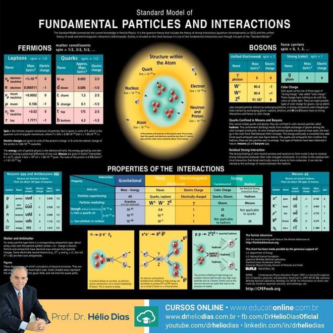 Na discussão que segue, resumiremos os ingredientes do assim chamado modelo-padrão da física de partículas elementares. Ele se manteve em sua forma básica por três décadas e tem resistido a um grande número de testes experimentais. Primeiro, a lista dos constituintes básicos, o conjunto de partículas atualmente consideradas como fundamentais/elementares/ indivisíveis. Tais partículas elementares são de tamanho menor do que 10–16 m(10 elevado a -16 metros), que constitui aproximadamente o limite experimental que somos capazes de atingir, e provavelmente são puntiformes – isto é, de um tamanho muito menor do os 10–16 m que somos capazes de resolver. Em seguida, discutiremos de que maneira essas partículas interagem. Após completar essas etapas, poderemos investigar como as partículas fundamentais se combinam para formar a hierarquia do próximo nível da matéria.