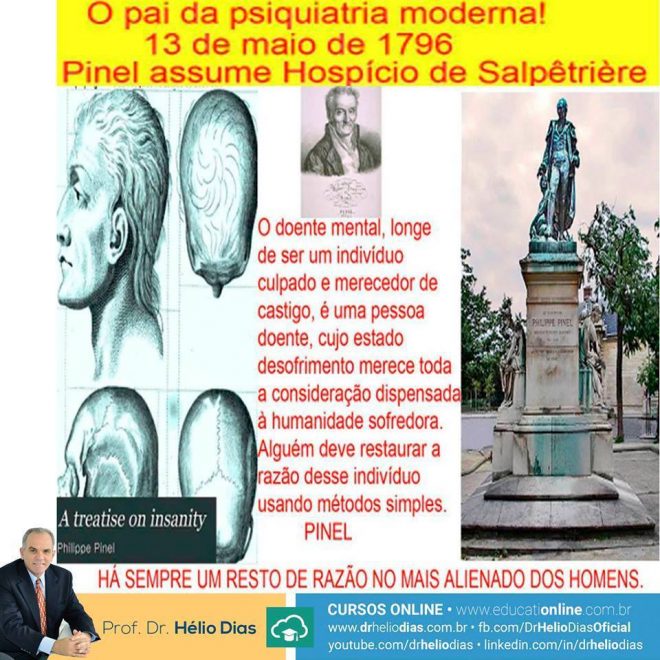 O “Tratado Médico-filosófico sobre a Alienação Mental” ou “Traité” de Philippe Pinel (1745-1826) apareceu em 1801 e foi republicado sem grandes alterações em 1809, inaugurando uma nova fase no desenvolvimento da psiquiatria clínica enquanto uma especialidade médica. Pinel ficou célebre como aquele que retirou os grilhões e correntes dos pacientes em Bicêtre, além de ter inaugurado a fase clínica da psiquiatria através do método empírico. Pinel enfatizou a necessidade de investigar-se predominantemente as causas afetivas das doenças mentais ao invés de se perder em estéreis discussões sobre as localizações cerebrais das mesmas, conforme suas próprias palavras nesta passagem: “Seria equivocado considerar a alienação mental, objeto particular deste trabalho, perdendo-se em nebulosas discussões sobre a sede do intelecto e a natureza das lesões, assunto obscuro e impenetrável”. (Pinel, 1801, Traité; in: Pessotti, 1994, LE, p.145)!